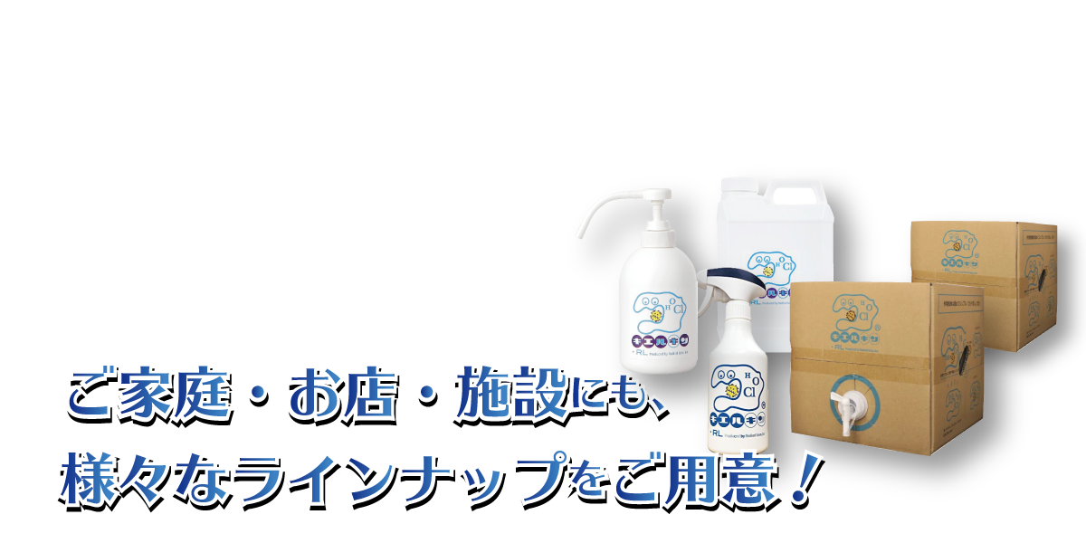 また、次亜塩素酸のチカラが最大限活かされるように製造されているため、人体に害のない薄い濃度でも高い除菌力を発揮します。